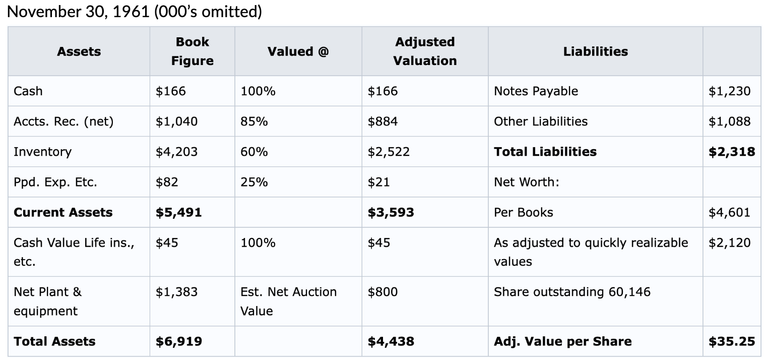《1963-07-10 Warren Buffett's Letters to Limited Partners》有3张巴菲特手算的表格,当年的巴菲特31岁,这个文件已经过去很久,网上有一份最原始的扫描件,参考:《Warren Buffett Letters to Partners 1959 – 1975》。