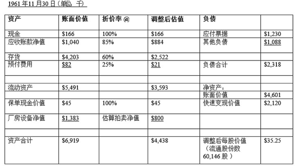 这张表格是Dempster1961的资产负债表,Dempster是一家风力驱动的农机公司,当年的汽油发动机、电动机就像今天的AI,巴菲特买了别人都不好看、注定被淘汰的、风力驱动的农机公司,花了140多万,3年时间至少赚了1倍多。
