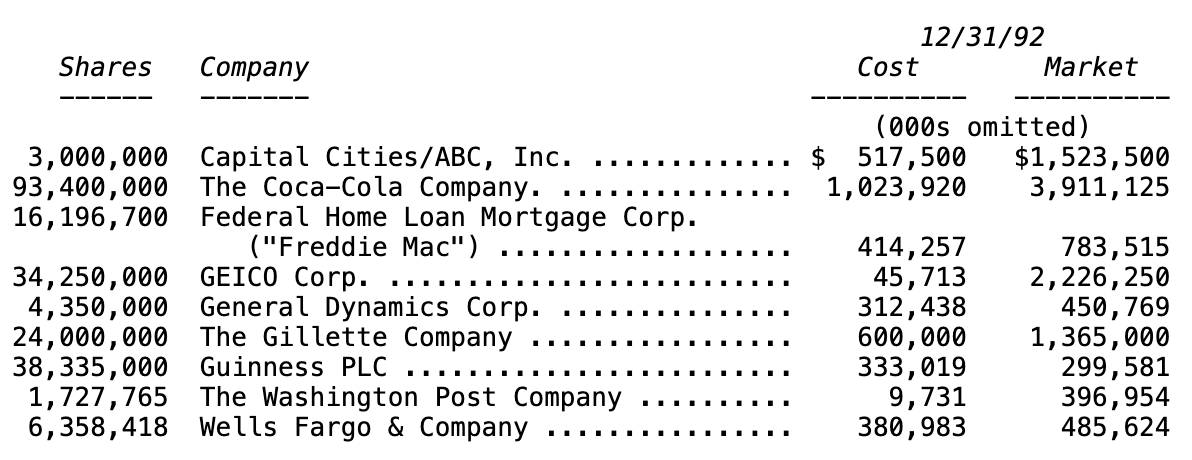 眼尖的读者会注意到,我们的公司费用从 1991 年的 560 万美元降至 1992 年的 420 万美元。也许你会以为我把公司的公务机 The Indefensible 给卖了。别想了!相比“让董事长退休”,我对“让飞机退休”的想法更反感。(在这件事上,我展现了不太符合我性格的“灵活性”:多年来我激烈反对公司公务机,但最终我的教条被我的因果辗过了。)