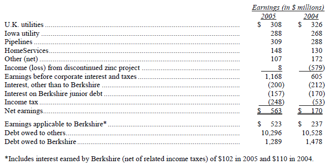 3)At MidAmerican, we have substantial debt, but it is that company’s obligation only. Though it will appear on our consolidated balance sheet, Berkshire does not guarantee it.